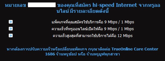 เพิ่งจะขออินเทอร์เน็ตมาติดอีกบ้านนึง ส่วนบ้านที่รามอินทรายังคงใช้ AIS AirNet 7/7 เสียดายที่แถวบ้านที่ติดเน็ตใหม่นี้ ยังไม่รองรับ AIS AirNet ผมเลยลองติดต่อกับ True Online ขอติดตั้งแบบ xDSL ไม่ได้ขอแบบ Docsis เพราะอยากจะขอเบอร์บ้านไว้สักเบอร์ด้วย ความเร็วที่ขอไปคือ Download 9Mbps/ Upload 1Mbps ถ้าเป็นแบบ 599 แม้ว่าราคาจะถูก แต่ได้ upload 512Kbps เท่านั้นเอง แถมเจ้า xDSL นี่ก็แถม Wi-Fi Router ด้วย