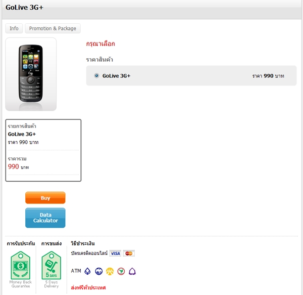 TruemoveH แนะนำมือถือ GoLive 3G+ ให้คุณใช้งานอินเทอร์เน็ต 3G+ ของ TruemoveH ได้ในราคาเบาๆ ใช้ CPU 600MHz Ram 512MB รองรับการใช้งาน 3G+ HSDPA 850MHz ความเร็วสูงสุด 7.2Mbps แถมสั่งซื้อออนไลน์ได้ ส่งถึงบ้านฟรี