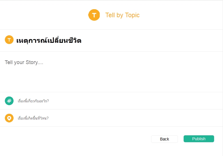 แนวคิดคือการเล่าเรื่องราวที่เราประทับใจ มี Tell your story และ Tell by Topic