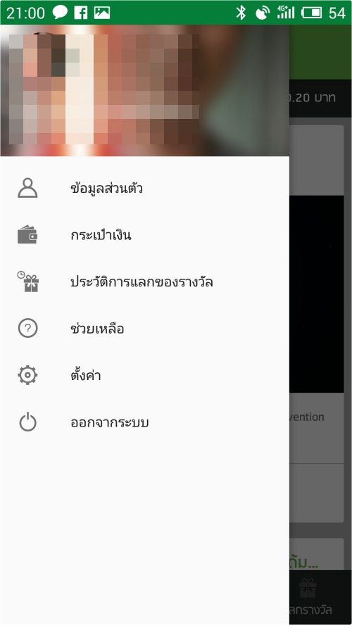 เมนูของแอพ สามารถตรวจสอบยอดเงินในกระเป๋า ประวัติการแลกของ