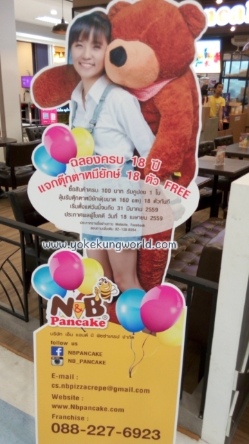 ที่บอกว่าเป็นจ้าวแห่งต้นตำรับแพนเค้กและเครปก็เพราะว่า เขาเปิดให้บริการ (ทั้งธุรกิจ) มา 18 ปีแล้ว ตอนนี้มีโปรโมชั่น ซื้อครบ 100 บาท เขียนคูปอง ลุ้นตุ๊กตาหมียักษ์ 18 ตัว ตัวใหญ่ 160 เซ็นติเมตร วันนี้ ถึง 31 มีนาคมนี้