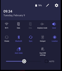 ทางด้านการใช้งาน คล่องตัวด้วย Quick Menu เปิดปิด Wi-Fi / data SIM1&2 / Airplane Mode / เสียง & สั่น / bluetooth  / sync / hotspot / location / rotate screen / ตั้งค่า Dual SIM เรียกได้ว่า ในหน้าจอนี้ กำหนด ปรับแต่งได้สะดวกและคล่องตัวแบบไม่ต้องเข้า setting (มุมขวาบน) เลย