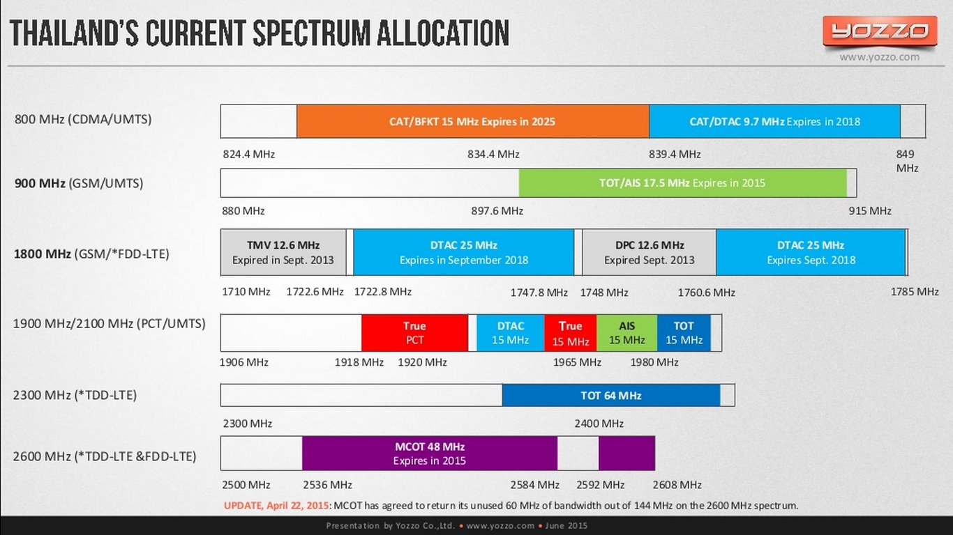 อ้างอิงบทความ ทบทวนความรู้เรื่อง “คลื่น” มือถือในไทย ก่อนประมูล 4G จะเห็นได้ว่า ระบบสัมปทานในประเทศไทยนั้นจะมีคลื่น 850MHz กับ 1800MHz เป็นของ CAT และ 2100MHz ของ TOT ส่วน 2100MHz ของ AIS dtac True ก็ได้ประมูลมาเมื่อปี 2555 ใช้งานเมื่อปี 2556 สำหรับ AIS นั้นมีคลื่น 900MHz 17.5MHz ซึ่งสิ้นสุดระยะเวลาสัมปทาน ตั้งแต่เดือนกันยายน 2558 แล้ว จริงๆ ซิมจะต้องดับ ทำไมซิมดับ ก็เพราะการสัมปทานสิ้นสุดลงแล้วนั่นเอง แต่ก็มีการคุ้มครองผู้บริโภค เรียกว่า การคุ้มครอง ป้องกันซิมดับ หลังจากนั้นเราก็มีการประมูลคลื่น 1800MHz และ 900MHz ตามลำดับ แต่เมื่อ AIS ประมูลคลื่น 900MHz มาต่อชีวิตซิมตนเองไม่ได้ ตามระยะเวลาสิ้นสุดสัมปทานคลื่น 900MHz ซิมจะต้องดับ ตั้งแต่ กันยายน 2558 แล้ว
