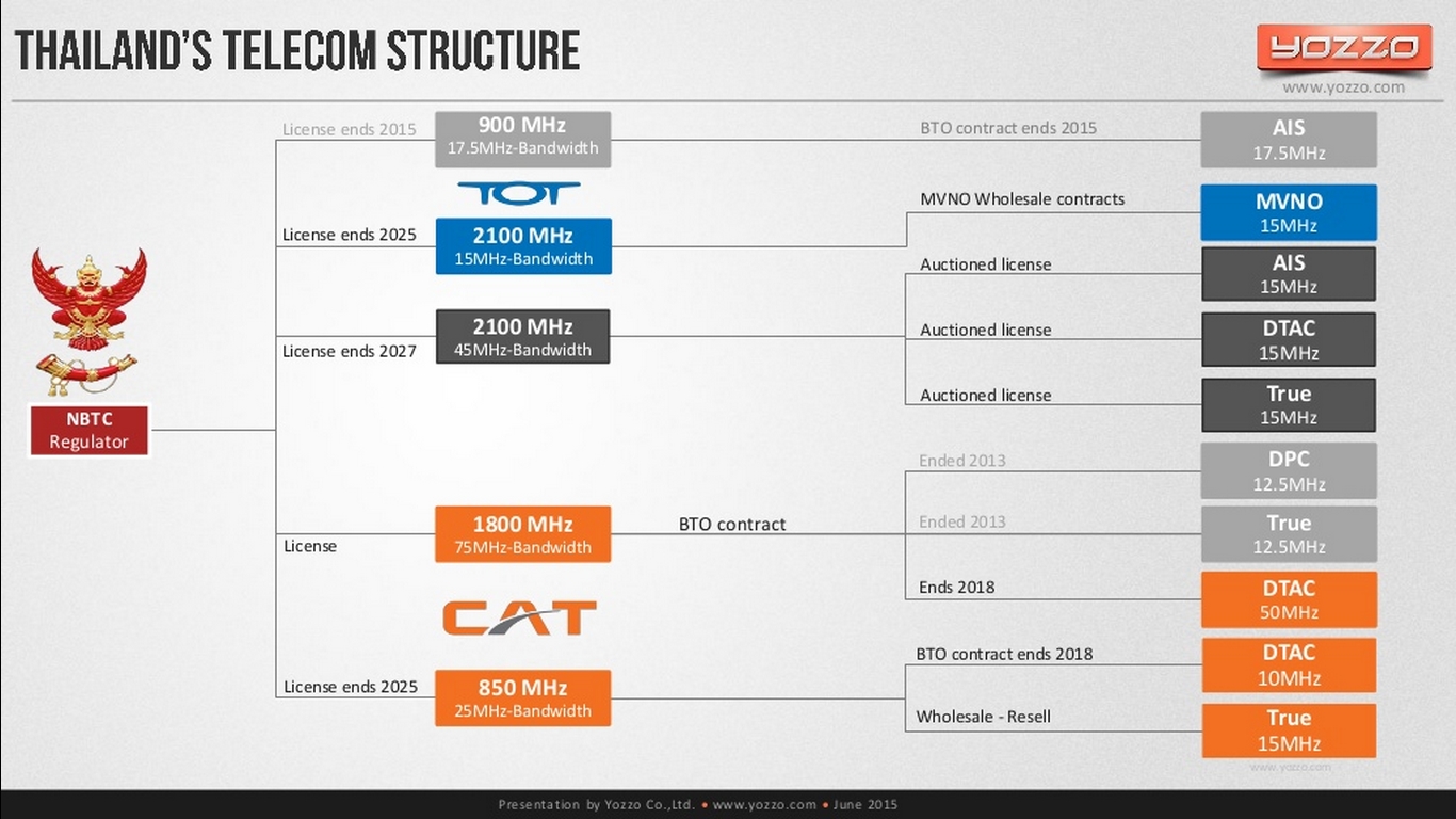ถ้าดูภาพโครงสร้างคลื่นโทรคมไทยเดือนธันวาคม 2558 จะเห็นว่า คลื่น 900MHz จะเป็น JAS, True เป็นส่วนของการประมูลแล้ว ไม่ใช่การสัมปทาน ที่มา