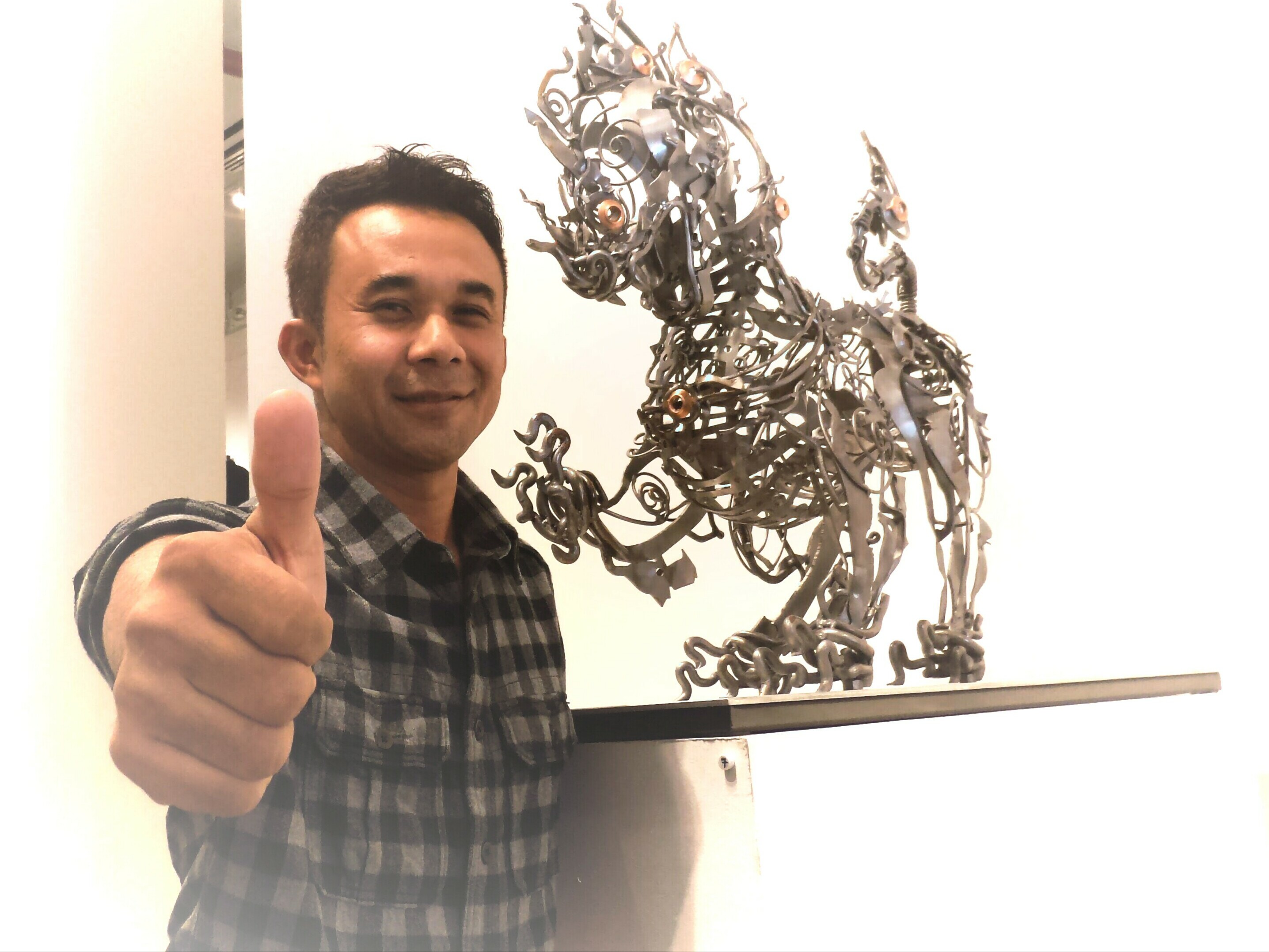 กับพี่บรรเจิด เหล็กคง ศิลปินไทยที่ไปจัดแสดงผลงานศิลปะ “เหล็กคง” ที่ Agora Gallery, New York