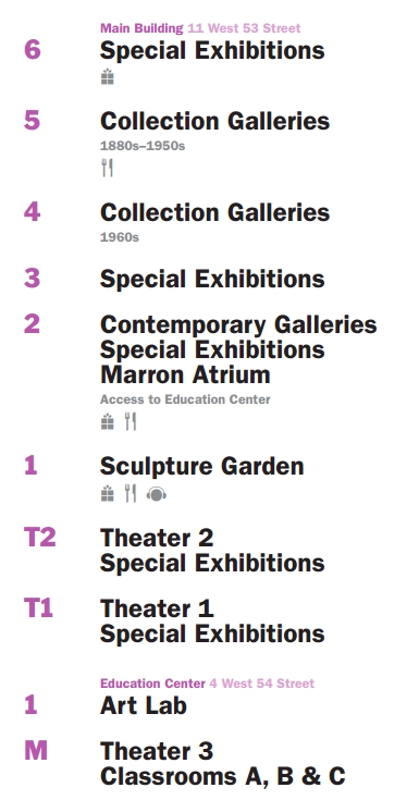 สำหรับ MoMA จะมีโซนต่างๆ ดังนี้ (ที่เราไปคือสาขา 11 West 53 Street)