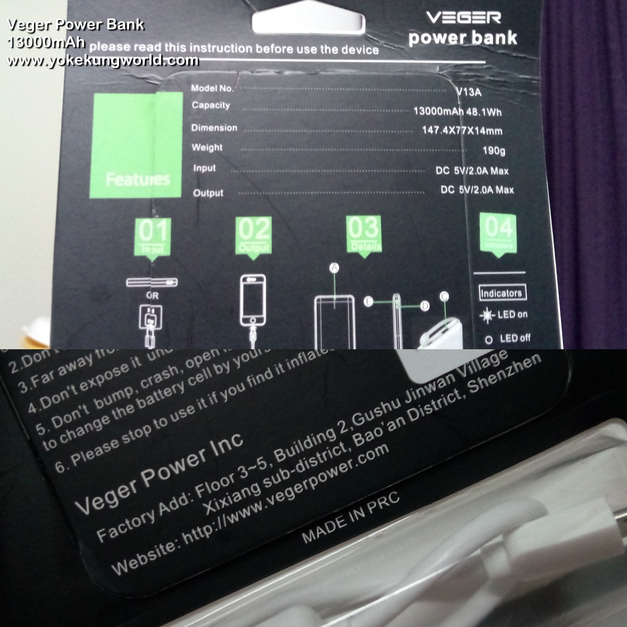 คุณสมบัติที่เห็นจากภาพ ทำให้ Veger Power Bank ครบครันทั้งการชาร์จ iPhone / Android แต่จุดนึงที่ยังเสียดายคือ การชาร์จไฟเข้า Power Bank นั้น ยังจำเป็นต้องใช้สาย Micro USB อยู่ ทำให้สะดวกเฉพาะตอนชาร์จมือถือ แต่ตอนชาร์จไฟเข้า Power Bank ยังไม่คล่องตัว ต้องใช้สายชาร์จ Micro USB และอแดปเตอร์ชาร์จไฟอยู่