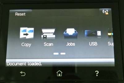 การควบคุม สั่งงานผ่านหน้าจอแบบสัมผัส ขนาด 10.9 เซ็นติเมตร จากการทดสอบใช้งาน สัมผัสดี แต่อาจจะต้องอาศัยความคุ้นเคยสักนิดในการสัมผัสหน้าจอให้แม่น เมนูหลักบน HP Color LaserJet Pro MFP M377dw ให้เราใช้นิ้วแตะสั่ง Copy / Scan / Jobs (ดูงานพิมพ์) / USB (เสียบ USB Flash Drive แล้วเลือกสั่งพิมพ์เอกสาร รูปภาพ จาก Flash Drive ได้เลย) ข้อดีของ HP Color LaserJet Pro MFP M377dw คือ ทำงานได้รวดเร็ว สแกนไฟล์ส่งถึงอีเมลล์ได้เลย เสียบ USB สั่งพิมพ์ได้สะดวก รองรับ network folders จัดการผ่านเครือข่ายง่าย เอาใจชาวออฟฟิที่เร่งรีบ