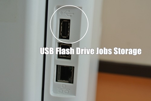 จะเห็นได้ว่า เครื่องปริ้น มี USB Port 2 ช่อง ด้านหน้าเอาไว้เสียบ Flash Drive หรือ Thumb Drive สั่งพรินต์งาน ส่วนด้านหลังเป็นพอร์ต USB สำหรับเสียบ Flash Drive คาไว้ (ไม่ต้องถอด) คือสละ USB Flash Drive ตัวนึงไว้เป็น Jobs Storage เลย (คุณสมบัตินี้ จะมีก็ต่อเมื่อเราอัพเดต Driver printer ล่าสุด ถ้าไม่เจอเมนูนี้ อัพเดต Driver ของเครื่องพิมพ์ล่าสุด) อ่านเพิ่มเติม