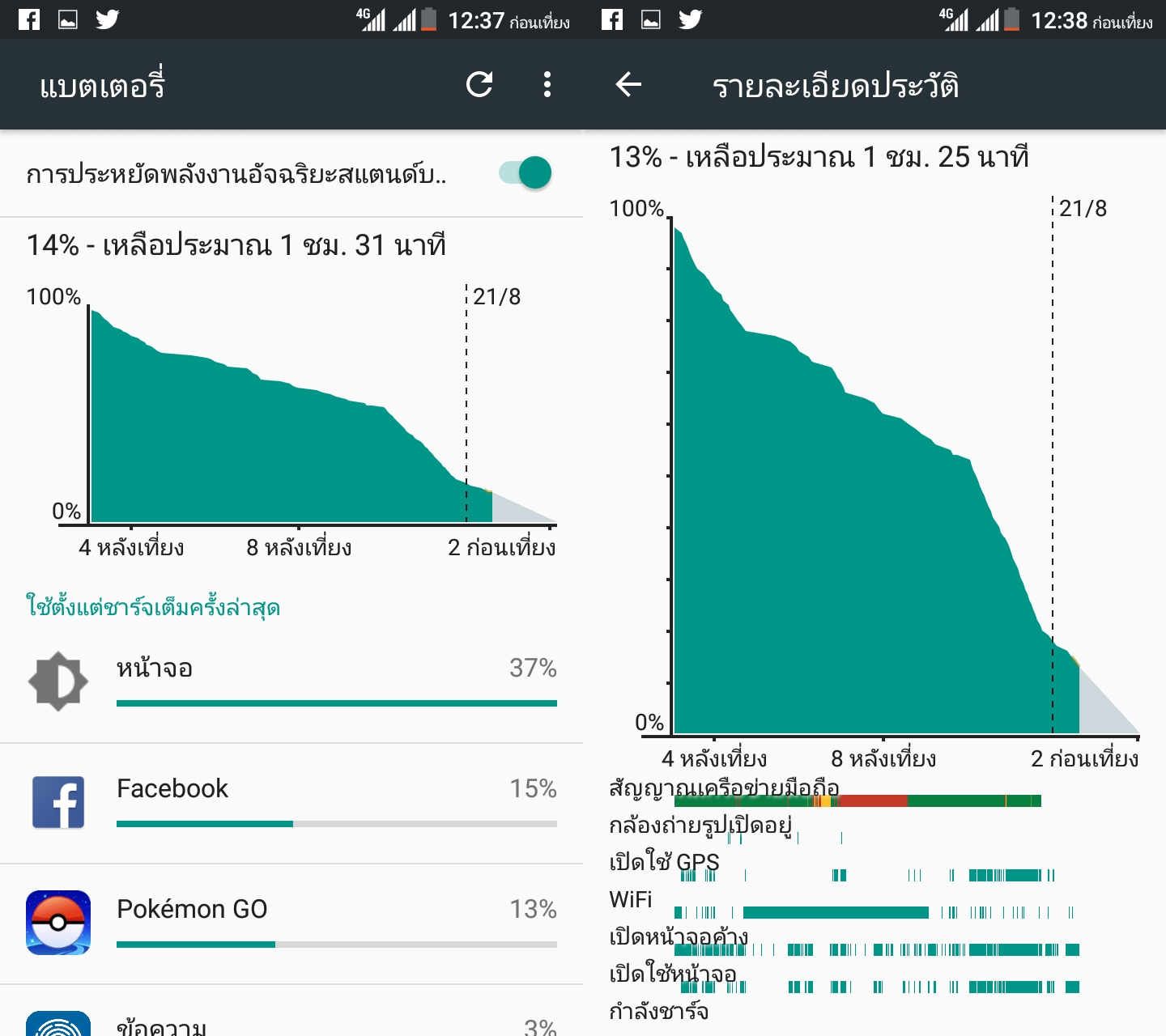 ใช้ตอนเช้า 7.30น. จะเห็นได้ว่าใช้ได้ยาวถึงเช้าอีกวัน ขึ้นอยู่กับพฤติกรรมการใช้งานของเราด้วย