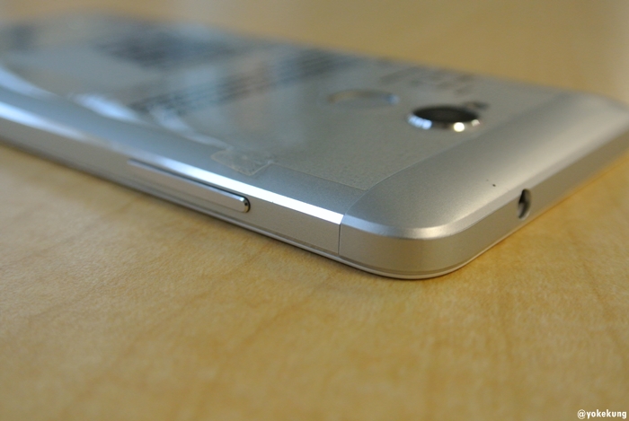 อีกด้านเป็น ช่องใส่ซิม ต้องใช้เข็มจิ้มถาดใส่ซิมออกมา ใส่ 2 ซิม หรือเลือกระหว่างใส่ 1 ซิมกับ Micro SD และปุ่ม Power