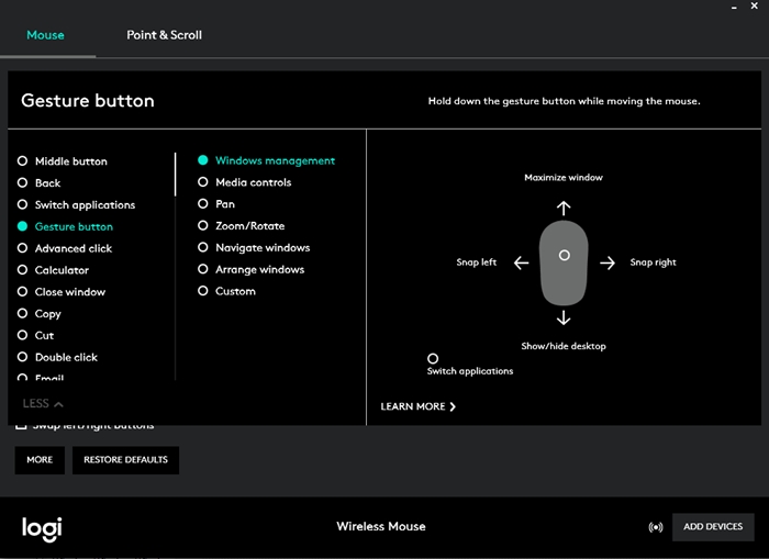โปรแกรม Logitech Options