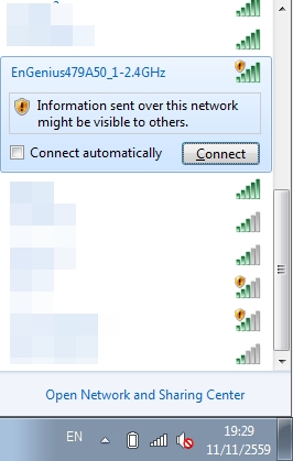 ถ้าเป็นการใช้งานปกติ แค่เสียบสายแลน ไฟติด เราก็ต่อ Wi-Fi ผ่าน EnGenius ใช้เน็ตได้ต่อเนื่องตามปกติ โดยไม่ต้องทำอะไรเลย แต่การ Connact ในตอนแรกยังไม่มีรหัสผ่าน แต่เราเข้าไปตั้งค่ารหัสผ่านได้เอง