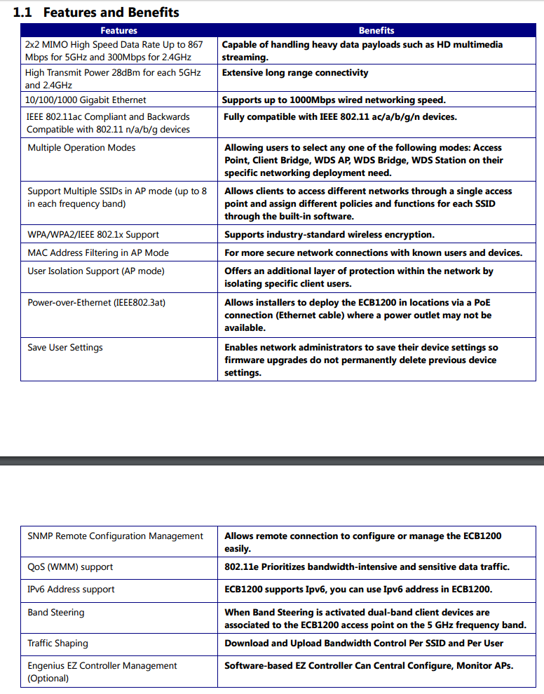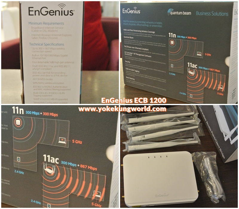 ทาง NVK Inter มีสโลแกนให้ว่า “ขยายสัญญาณไวไฟ – สำหรับเน็ตเร็วสูงมาก” นั่นหมายถึงว่า EnGenius ECB1200 รองรับ เน็ตบ้านความเร็วสูงมาก ที่ตอนนี้แข่งกันระดับ 50Mbps 100Mbps 200Mbps (Download) โดยคุณสมบัติของ ECB1200 รองรับ Wi-Fi 802.11AC/A/B/G/N แบบ DUAL RADIO และยังรองรับ IEEE 802.11 a/b/g/n ตัวมันสามารถใช้งานเป็นทั้ง AP/CB/WDS ตัวมันรองรับ Dual Concurrent ความเร็วสูงสุด 300Mbps (2.4GHz) + 867Mbps (5GHz) การตั้งค่า ง่ายมากๆ คอนฟิกด้วยเว็บบราวเซอร์ ผมอ่านคู่มือ Quick Installation Guide ความรู้ไม่ได้เทคนิคลึกก็ทำได้ง่ายมากๆ