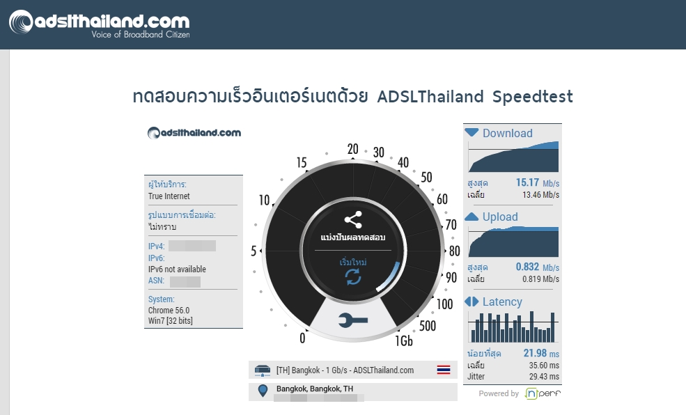 แต่เน็ตบ้านเป็น ADSL 15Mbps / 1Mbps ทดสอบ Speed Test เรื่องความเร็วเน็ตก็เหมือนเดิม เพิ่มเติมคือ Wi-Fi มีทางเลือกแชนแนลมากขึ้น
