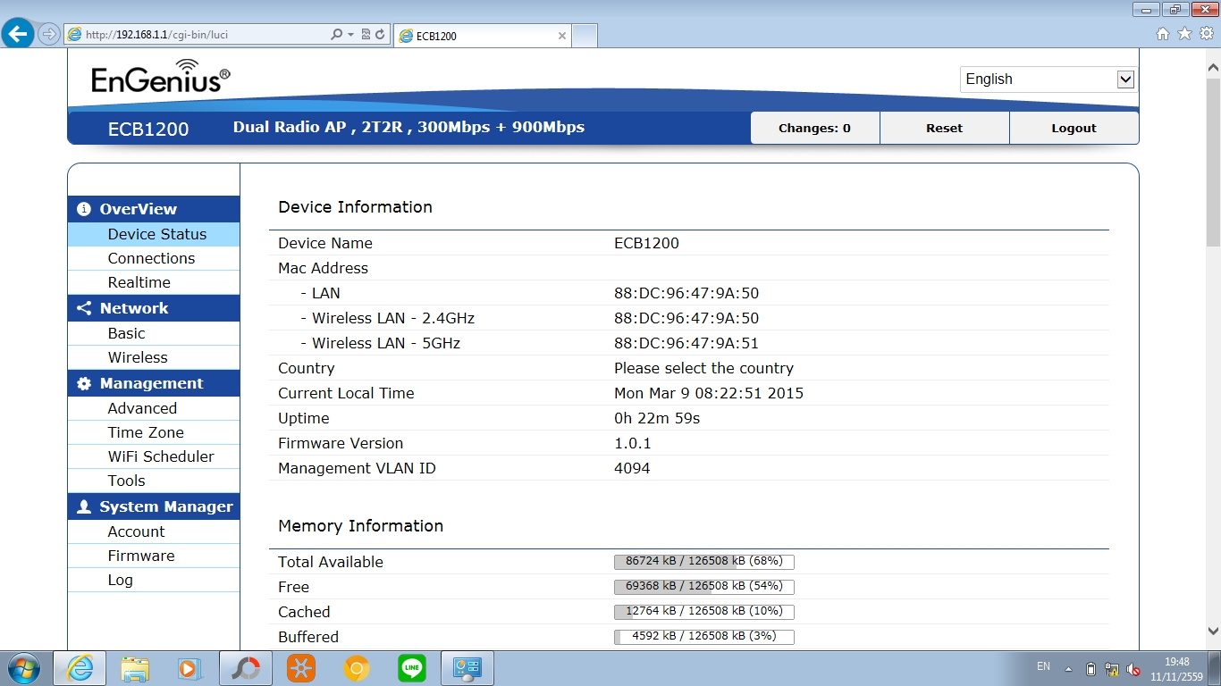 EnGenius ECB1200 Wireless Access Point AC Dual Band 1200 Mbps ผมนำมาใช้ในโหมด Access Point ครับ เพราะมีการใช้งานอุปกรณ์เยอะมาก มือถือผม 2 เครื่อง เครื่องรีวิวอีก 1 หรือ 2 เครื่องแฟน 1 คอมอีก 2 ก็เลยอยากจะต่อ Access Point ให้จัดการกับสัญญาณ 5GHz ได้ดีกว่าเร้าเตอร์เดิมที่เป็น 2.4GHz