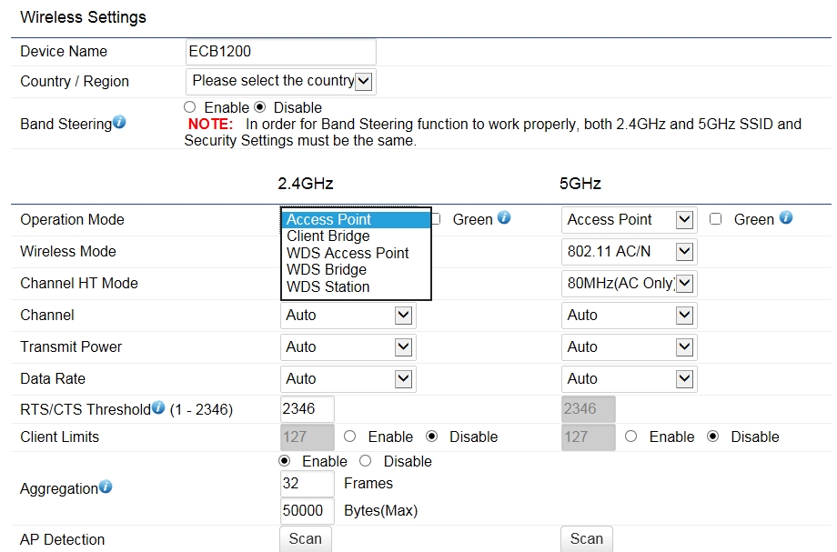 ส่วนหน้าจอนี้ จะมีการแจ้งว่า ถ้าจะให้ Band Steering ทำงานได้อย่างเต็มประสิทธิภาพ ทั้ง 2.4GHz และ 5GHz จะต้องตั้งค่า SSID ในส่วนของ Security Setting เหมือนกัน