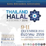 งาน Thailand Halal Assembly 2016 จัดโดย ศูนย์วิทยาศาสตร์ฮาลาล จุฬาลงกรณ์มหาวิทยาลัย, คณะกรรมการกลางอิสลามแห่งประเทศไทย และสถาบันมาตรฐานฮาลาลแห่งประเทศไทย มีทั้งงานประชุมวิชาการ ออกบูธของร้านค้าต่างๆ ภายใต้แนวคิด “Steering Towards Thailand & International Halal 4.0” หวังผลักดันผลิตภัณฑ์ฮาลาลของประเทศไทยขึ้นสู่อับดับ 1 ใน 5 ของโลก