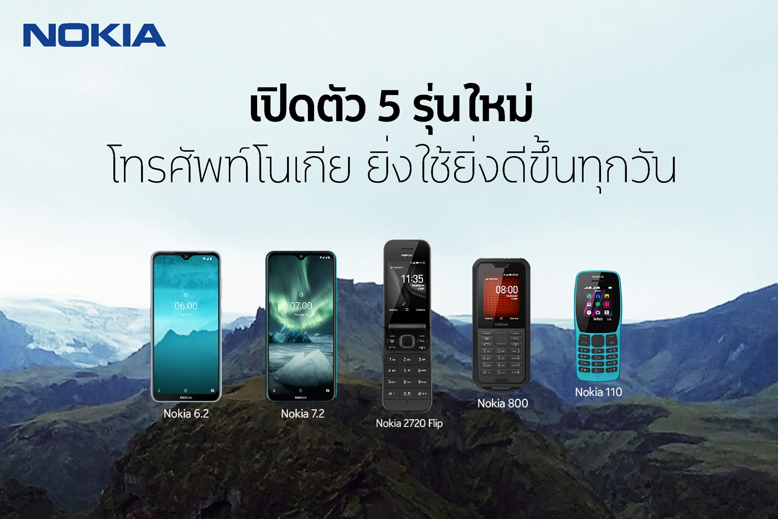 บริษัท เอชเอ็มดี โกลบอล ผู้รับสิทธิ์การจัดจำหน่ายสมาร์ทโฟนแบรนด์โนเกียทั่วโลกแต่เพียงผู้เดียว ได้เปิดตัวโทรศัพท์มือถือ 5 รุ่นล่าสุด ภายในงาน IFA ณ กรุงเบอร์ลิน ประเทศเยอรมนี เพื่อยกระดับประสบการณ์การใช้งานให้แก่แฟนๆ อย่างต่อเนื่อง ยิ่งใช้ยิ่งดีขึ้นทุกวัน นำโดยสมาร์ทโฟนระดับกลาง 2 รุ่น ที่มาพร้อมระบบปฏิบัติการ Android One ได้แก่ Nokia 7.2 และ Nokia 6.2 พร้อมด้วยโทรศัพท์รุ่นใหม่ในกลุ่มผลิตภัณฑ์ฟีเจอร์โฟน ได้แก่ Nokia 800 Tough, Nokia 2720 Flip และ Nokia 110