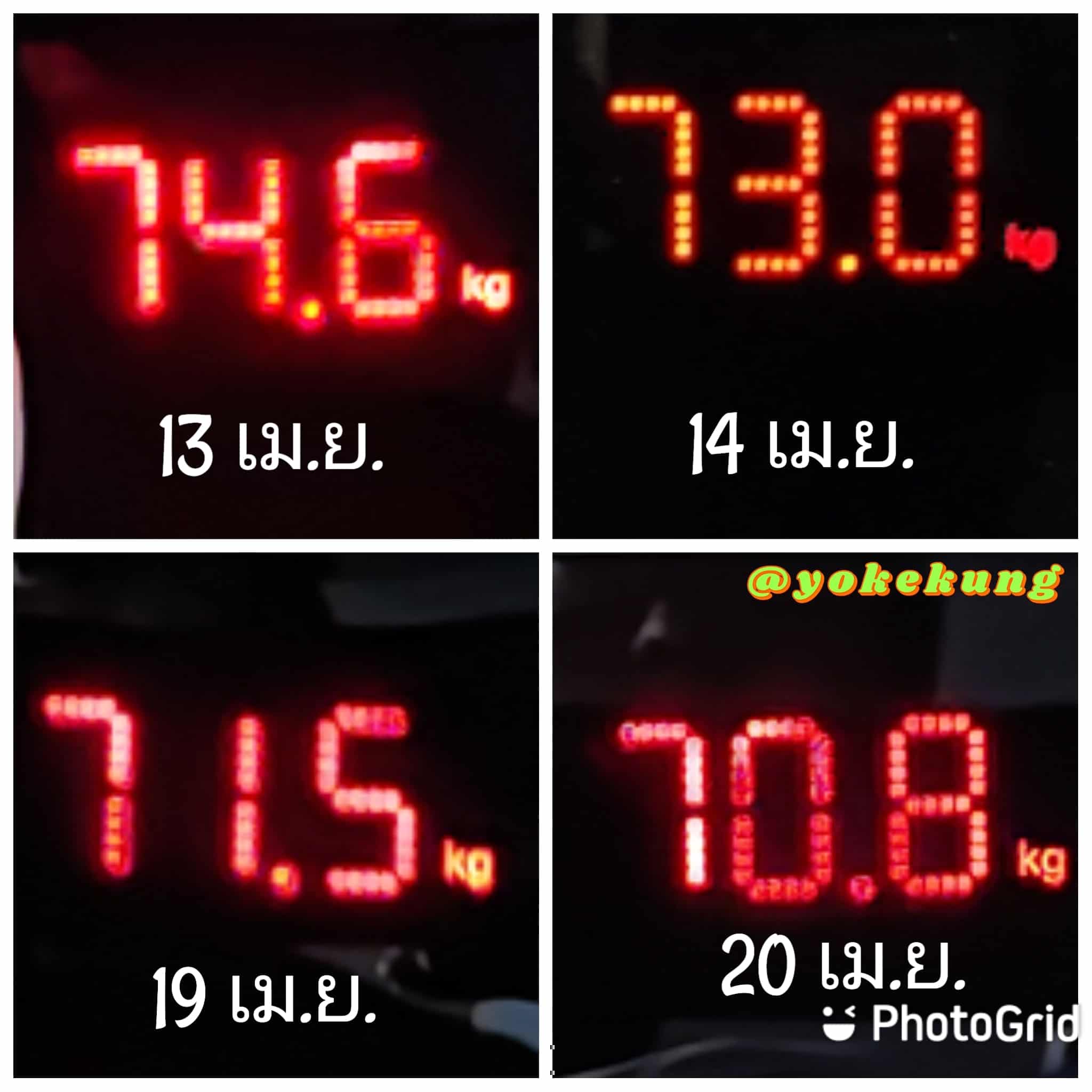 วันที่ 9 เมษายน ยังไปกินเค้กที่คาเฟ่ อยู่เลย น้ำหนัก 74.5 กิโล สังเกตว่าพุงใหญ่มาก