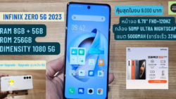เรียกได้ว่าเป็น ฉบับ Upgrade สำหรับ ZERO 5G 2023 มาพร้อมสเปกเต็มสูบ พร้อมการรวมสัญญาณเครือข่ายอัจฉริยะ 5G บน Infinix ZERO 5G 2023 ที่มาพร้อมดีไซน์และสีใสสวยงามทันสมัย มีสี Pearly White, Coral Orange และ Submariner Black พกพาสะดวก จับถนัดมือ เน้นจับกลุ่มคนรุ่นใหม่โดยรุ่นนี้โดดเด่นเน้นการเล่นเกมและความบันเทิงเต็มรูปแบบ ผสานกับการใช้งานที่ลื่นไหลด้วยขุมพลังจากชิปเซ็ต MediaTek Dimensity 1080 ขนาด 6 นาโนเมตร เป็นสมาร์ตโฟน 5G ตัวแรง ที่ได้รับการอัปเกรดให้สามารถใช้งานได้อย่างเต็มประสิทธิภาพ พร้อมเสริมศักยภาพการใช้งานที่ยอดเยี่ยมด้วย ROM 256GB และ RAM 8+5GB รวมถึงยังมอบประสบการณ์การใช้งานที่เหนือกว่าด้วยหน้าจอขนาดใหญ่ 6.78 นิ้ว ความละเอียดแบบ FHD+ และรีเฟรชเรท 120Hz นอกจากนี้ Infinix ยังการันตีว่า ZERO 5G 2023 เป็นมือถือคุณภาพ สเปกแรง ที่คุ้มค่าในเรทราคาเดียวกัน ตอบโจทย์ผู้ใช้งานที่หลากหลายได้ในทุกไลฟ์สไตล์