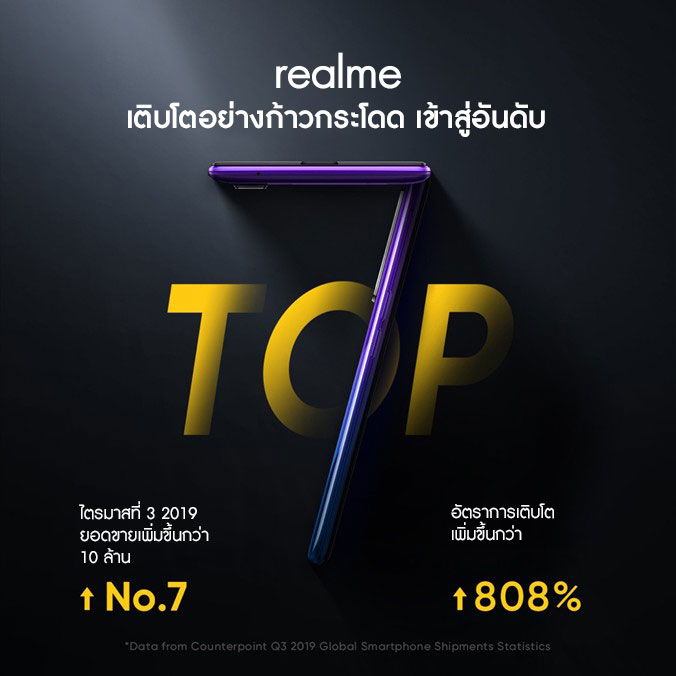 realme แบรนด์สมาร์ตโฟนเพื่อคนรุ่นใหม่ที่เติบโตเร็วที่สุดในโลก นำเสนอผลิตภัณฑ์สมาร์ตโฟนและอุปกรณ์ AIoT ที่มาพร้อมเทคโนโลยีทันสมัยซึ่งให้ผู้บริโภคทั่วไปสามารถเข้าถึงได้ง่าย ด้วยกลุ่มผลิตภัณฑ์ที่มีทั้งสมาร์ตโฟนและอุปกรณ์เทคโนโลยีไลฟ์สไตล์ที่คุ้มค่าทั้งสเปก คุณภาพ และงานออกแบบระดับพรีเมียม เพื่อเจาะกลุ่มคนหนุ่มสาวรุ่นใหม่ในระดับราคาที่ทุกคนสามารถซื้อหาได้ บริษัทฯ ก่อตั้งขึ้นอย่างเป็นทางการเมื่อปี ค.ศ. 2018 โดย Sky Li ภายใต้แนวคิด “Dare to Leap” ปัจจุบัน realme ถือเป็นบริษัทผู้ผลิตสมาร์ตโฟนที่ใหญ่เป็นอันดับ 7 ของโลกและสามารถเติบโตจนติดกลุ่ม 5 อันดับแบรนด์สมาร์ตโฟนชั้นนำใน 18 ประเทศทั่วโลกภายในเวลาเพียง 2 ปี โดยในไตรมาสที่ 2 ของปี 2021 realme สามารถขยายตลาดมากถึง 61 ตลาด ทั้งในจีนและเอเชียตะวันออกเฉียงใต้ เอเชียใต้ ยุโรป รัสเซีย ออสเตรเลีย ตะวันออกกลาง ละตินอเมริกา และแอฟริกา สามารถดูข้อมูลได้ที่ www.realme.com