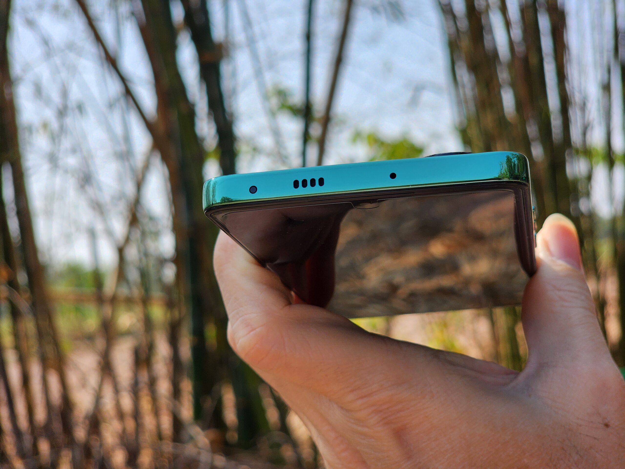 ส่วนต่างๆ ของตัวเครื่อง ด้านบน มีลำโพง เป็นมือถือที่มีระบบ DOLBY ATMOS เครื่องแรกของ TECNO
