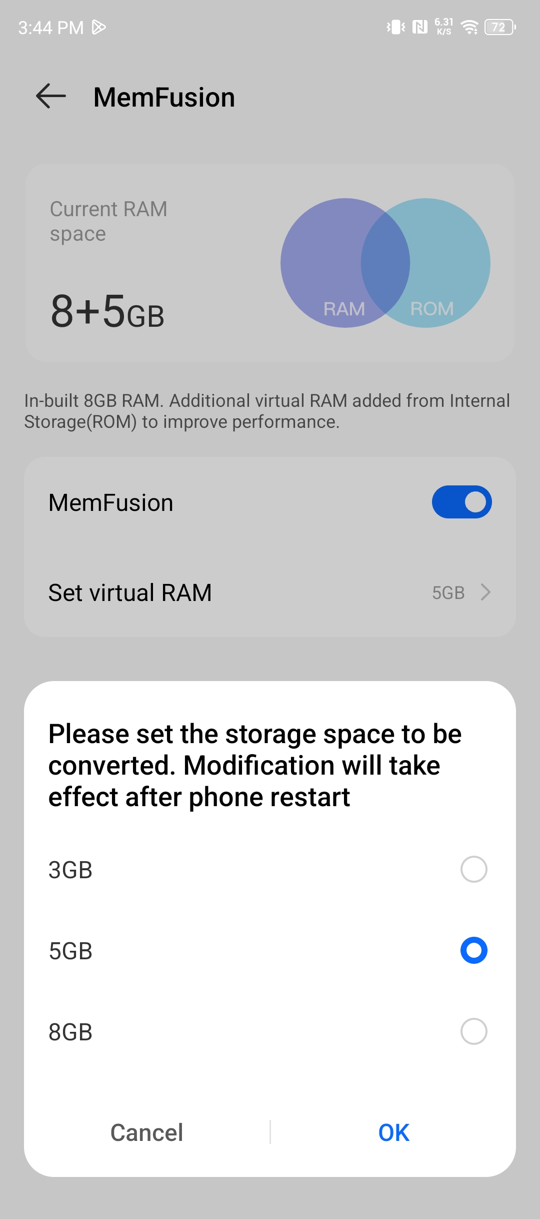 ในมือผมคือรุ่น RAM 8GB / ROM 256 ROM เพิ่ม MemFusion 8+8GB โดยรองรับ MemFusion 3GB / 5GB / 8GB ตามภาพเลยครับ