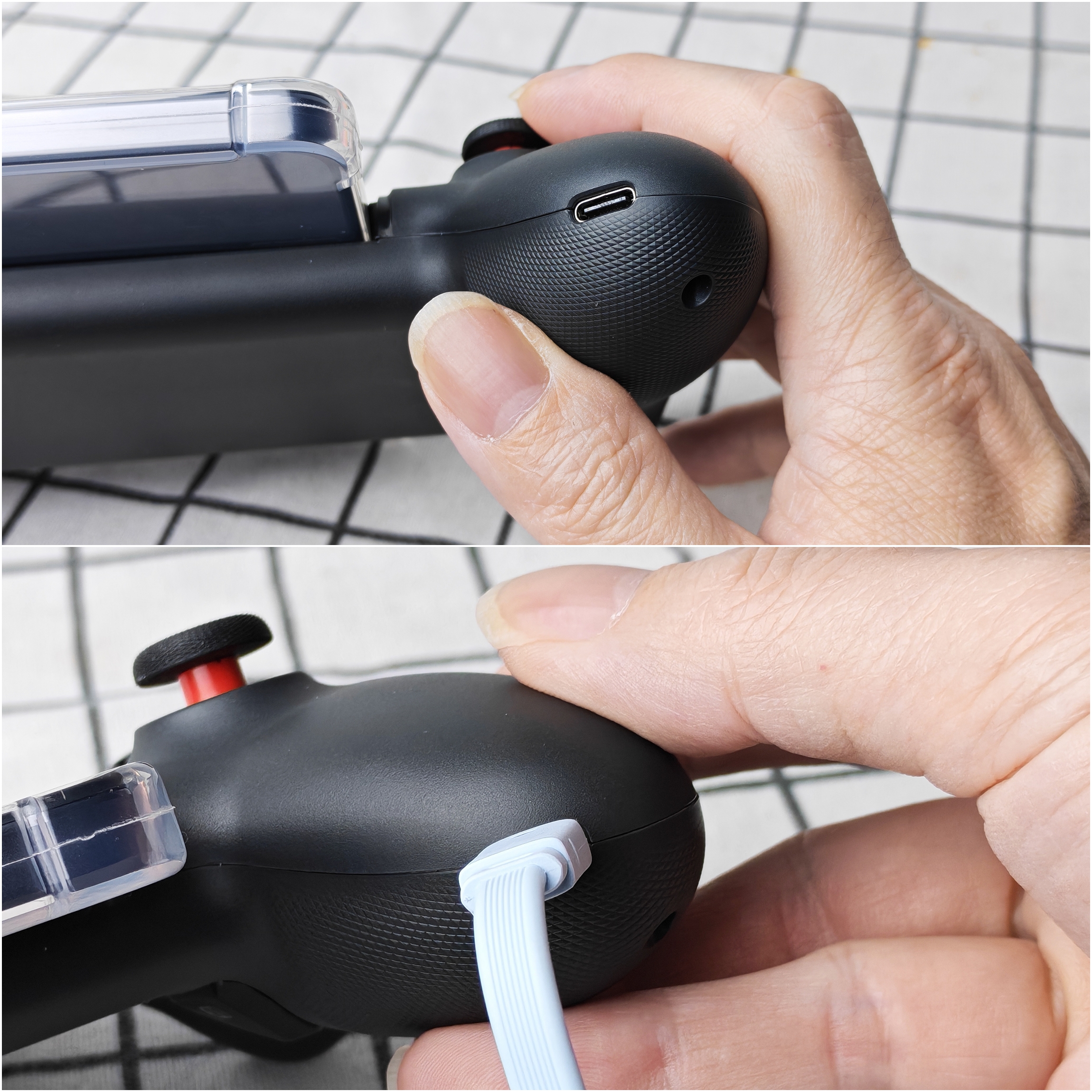 ในขณะที่เล่นเกม หากแบตแท็บเล็ตใกล้หมด สามารถชาร์จผ่านจอยสติ๊กได้เลยครับ รองรับชาร์จไว