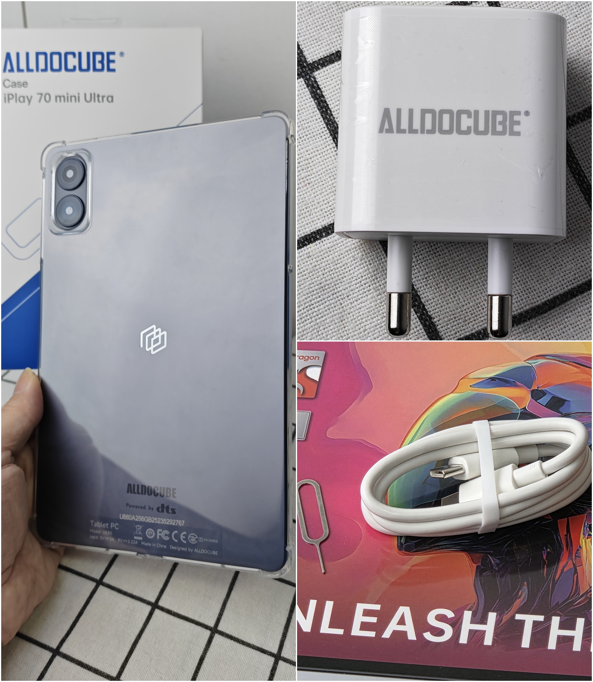 สิ่งที่คุณจะได้คือ ในกล่องมี แท็บเล็ต, สายชาร์จ USB-C to USB-C, เข็มจิ้มถาดซิม ส่วนที่แถมแยกกล่อง คือ เคสใส, หัวชาร์จ USB-C PD 20W มี มอก., และ Alldocube GamePad JoyStick ที่แม้ใส่เคสก็สามารถเสียบกับจอยสติ๊กได้เลย