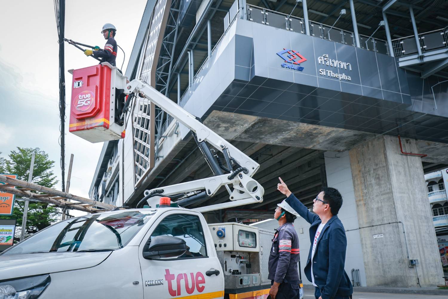 ทรู คอร์ปอเรชั่น โดย นายกนกศักดิ์ นิ่มนวลรัตน์ หัวหน้าฝ่ายส่วนราชการและสาธารณูปโภค นำทีมวิศวกรลงพื้นที่เพื่อดำเนินงาน ร่วมกับ การไฟฟ้านครหลวง (MEA) โดย นายฐิติวุฒิ เงินคล้าย รองผู้ว่าการ พร้อมด้วย ภาคีเครือข่ายที่เกี่ยวข้อง ร่วมดำเนินงานรื้อถอนสายสื่อสาร และนำสายสื่อสารลงดิน เส้นทางแรกของจ.สมุทรปราการ ที่ถนนเทพารักษ์ ทั้ง 2 ฝั่ง ตั้งแต่แยกศรีเทพา-สถานีรถไฟฟ้าศรีเทพา ระยะทาง 1 กิโลเมตร โดยมีการติดตั้งโครงข่ายใยแก้วนำแสงฝังใต้ดิน เพื่อทดแทนสายสื่อสารเดิมบนอากาศ นับเป็นหมุดหมายสำคัญในการปรับโฉมเมือง สร้างทัศนียภาพที่สวยงาม สะอาด ปลอดภัย และยกระดับคุณภาพชีวิตของประชาชนอย่างยั่งยืน ซึ่งในการดำเนินการครั้งนี้ การไฟฟ้านครหลวงจะทำการรื้อถอนเสาไฟฟ้าบนถนนเทพารักษ์ ไปพร้อมกัน โดยเสาไฟฟ้าที่รื้อถอนออกจะถูกนำไปใช้ประโยชน์ต่อ ในการทำแนวกันคลื่นป้องกันการกัดเซาะชายฝั่ง สะท้อนการใช้ทรัพยากรอย่างคุ้มค่าและเกิดประโยชน์สูงสุด