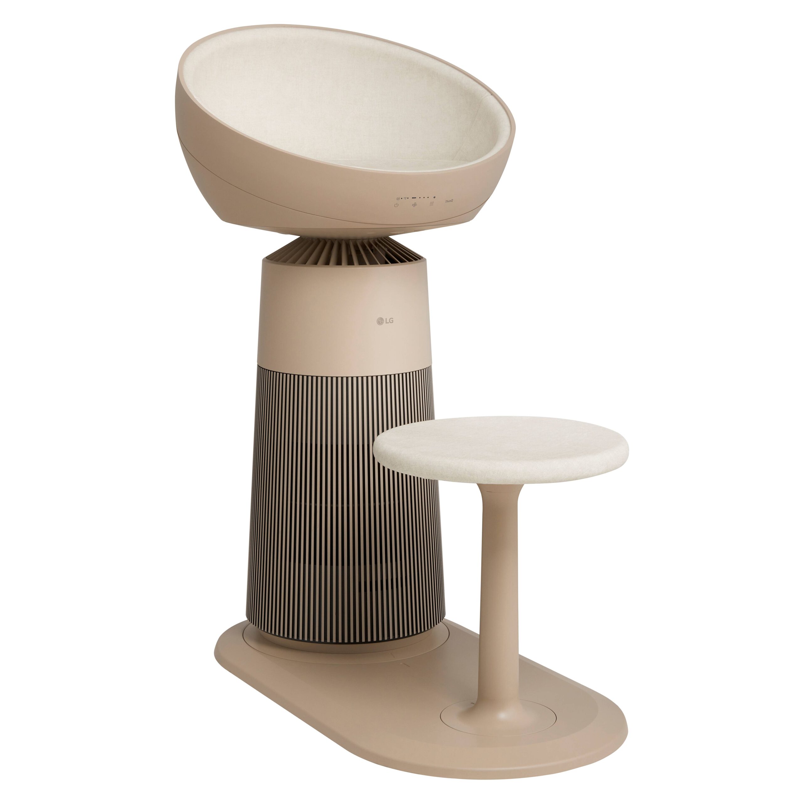 เครื่องฟอกอากาศ LG PuriCare™ AeroCat Tower โดดเด่นด้วยนวัตกรรมและดีไซน์ที่ออกแบบเพื่อบ้านที่เลี้ยงแมวโดยเฉพาะ มีโดมที่นั่งพักผ่อนด้านบนสำหรับน้องแมว สามารถตั้งเวลาและปรับอุณหภูมิอุ่นได้ถึง 2 ระดับ ทั้งยังฟอกอากาศอย่างทรงพลัง มั่นใจอากาศสะอาดสำหรับทั้งคนและสัตว์เลี้ยงด้วยเทคโนโลยี Total Air Purification ระบบกรองอากาศหลายขั้นตอน กำจัดไรขนแมว ลดสารก่อภูมิแพ้และกลิ่นไม่พึงประสงค์ในอากาศ พร้อมโหมดเหมียวแฮปปี้ ทำงานเงียบไม่รบกวนการพักผ่อนของน้องแมว เสริมด้วยฟังก์ชั่นดูแลสุขภาพแมว ที่ให้เจ้าของสามารถติดตามน้ำหนักและเวลาพักผ่อนเมื่อแมวอยู่ในโดมได้ผ่านแอปพลิเคชัน LG ThinQ